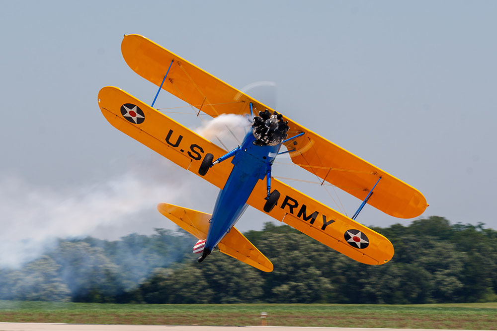 Photo by Rick Pepper – 2012 Mankato Air Show – Julie Clark in her T-34 Mentor taxis in on the runwayPhoto by Rick Pepper – 2012 Mankato Air Show – US Army Bi-Plane