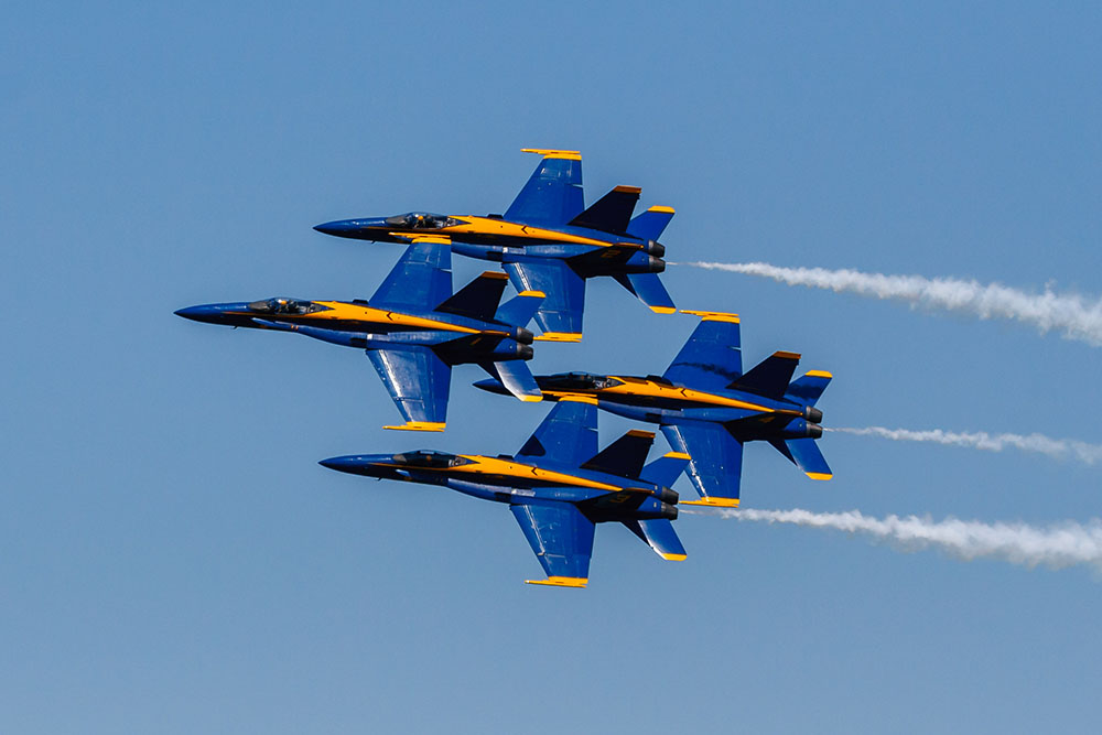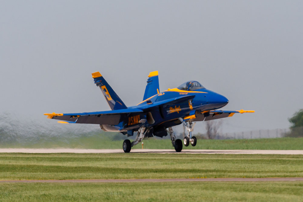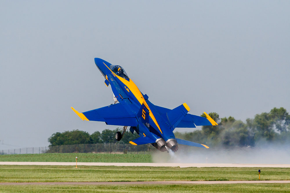 Photo by Rick Pepper – 2012 Mankato Air Show – The nose gear of Blue Angel #3 aircraft leaves the groundPhoto by Rick Pepper – 2012 Mankato Air Show – The Blue Angel #5 aircraft (the lead solo) performs an abrupt, high speed take-offPhoto by Rick Pepper – 2012 Mankato Air Show – The Blue Angels fly by in the diamond formation